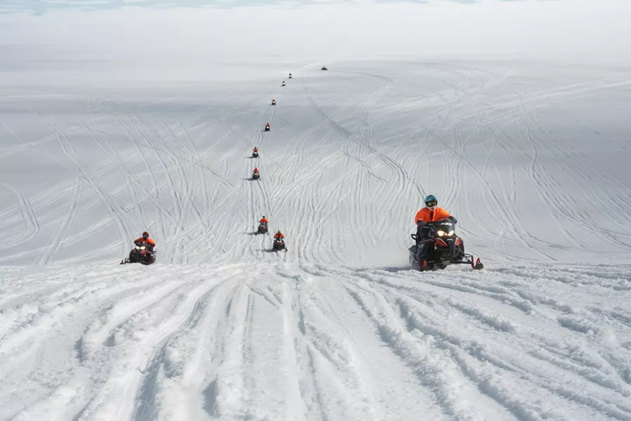 Z Reykjavíku můžete vyrazit na ledovec Langjökull, a tam nasednout na sněžný skútr. Budete opět vyzvednuti z centra Reykjavíku – k dispozici je několik lokalit ze kterých si vyzvednutí můžete zvolit.